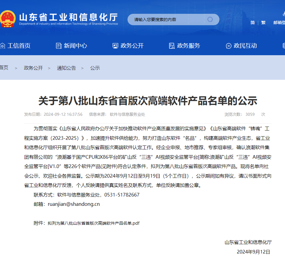 第八批山東省首版次高端軟件產品名單