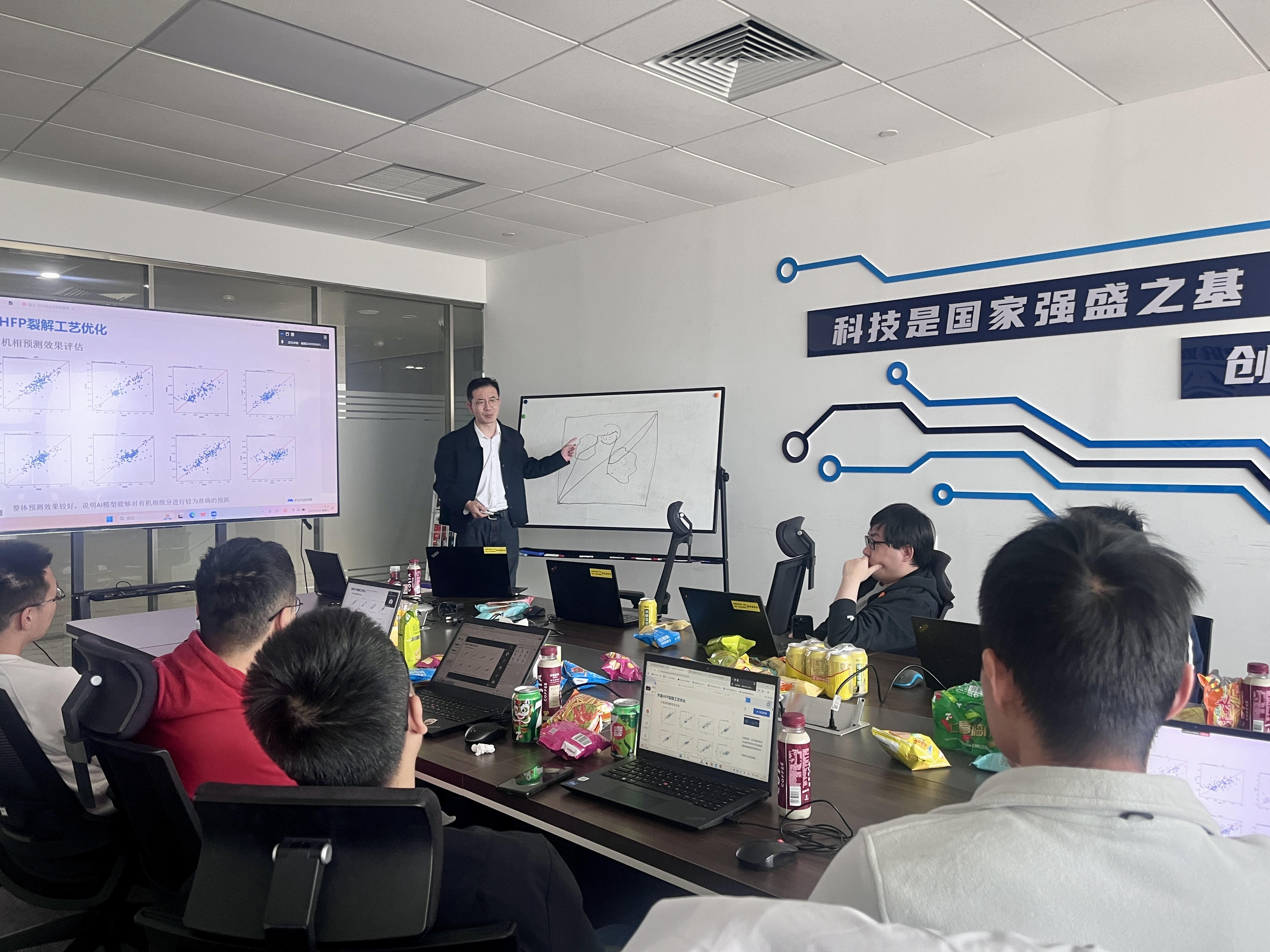 值得一提的是,公司總經(jīng)理柳彥宏親臨指導(dǎo),與AI研究院工藝優(yōu)化算法團(tuán)隊(duì)進(jìn)行了深入交流。會(huì)議采用了創(chuàng)新的"茶歇研討"模式。在輕松的氛圍中,研發(fā)人員一邊品嘗茶點(diǎn),一邊就"數(shù)字孿生在工藝優(yōu)化中的應(yīng)用邊界"等問(wèn)題展開自由討論,碰撞出不少跨學(xué)科的新思路。柳總也參與其中,與年輕工程師們親切交流,鼓勵(lì)大家"保持學(xué)術(shù)好奇心,同時(shí)緊盯產(chǎn)業(yè)需求"。