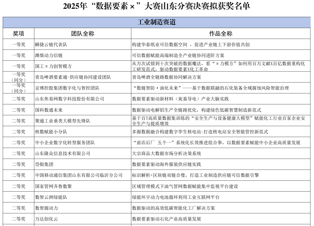 國工智能榮獲2025年“數據要素X”大賽山東分賽決賽工業制造賽道一等獎