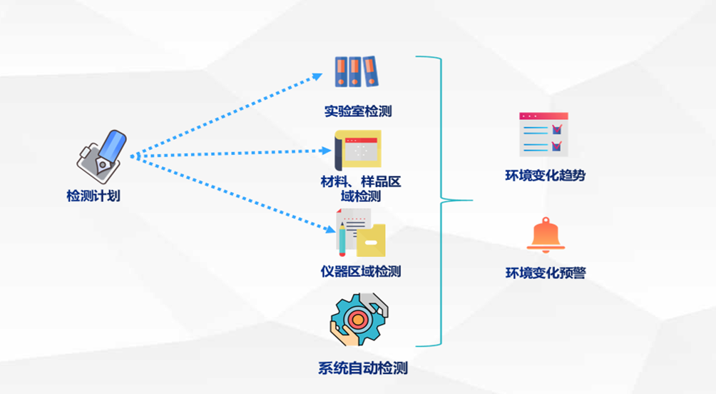 系統上線前,檢測環境的信息記錄到紙質單據上,管理者無法及時掌握實驗環境檢測情況,無法針對環境工作有針對的調整。系統上線后,管理者可以制定計劃,檢測人員根據計劃定期檢測,重要的實驗室使用系統采集實時的環境數據,系統可以形成環境變化趨勢和環境變化預警提供管理者參考,提高環境管理水平。