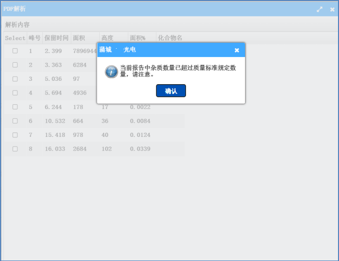 針對于距離主峰較遠的雜質,系統根據雜質系數(雜質時間/主峰時間)、雜質時間兩種因素進行相似度分析。分析出,該檢驗結果中的雜質是否為新增,異常雜質。