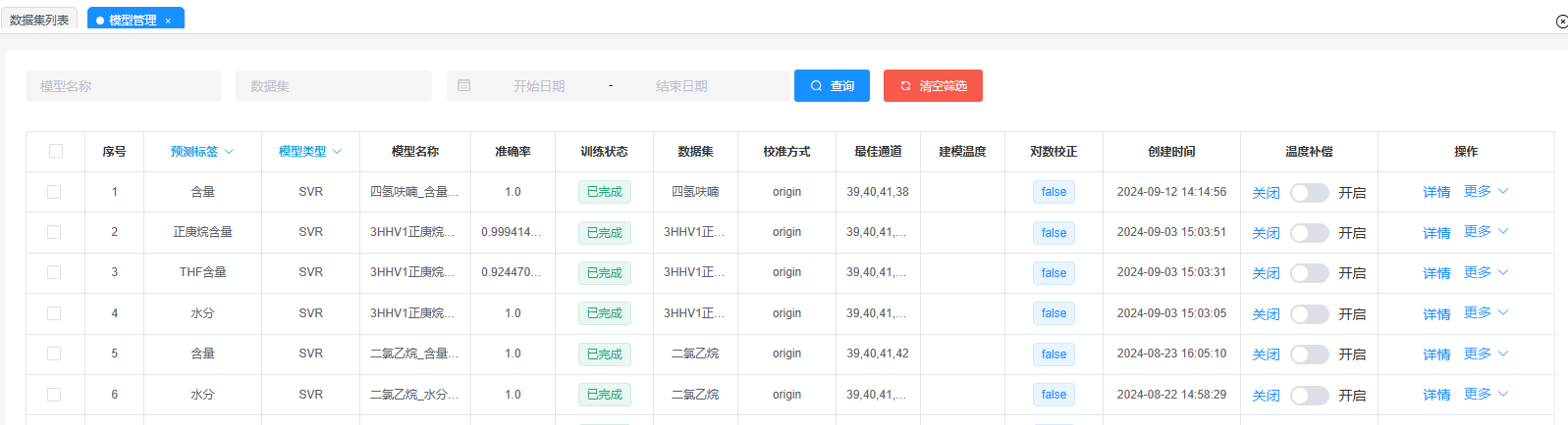 4. 靈活性強,針對企業(yè)同一精餾裝置精餾回收不同溶劑的情況,可以分別建立模型,提高智能光譜儀的靈活性和適應性。操作簡單,生產(chǎn)人員經(jīng)過簡單培訓即可完成在線光譜儀的建模、維護等相關(guān)操作。下圖為同一精餾裝置精餾不同溶劑時不同檢測指標的模型示例。
