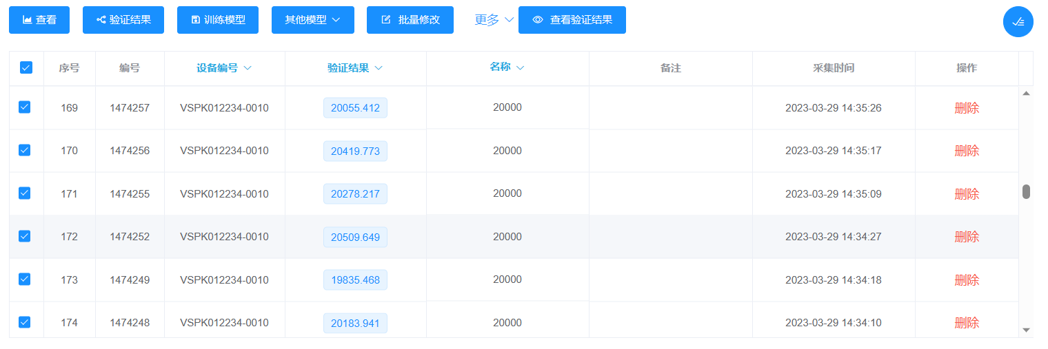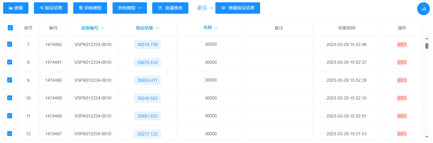 將所采集到的每組數據取10條進行查看分析,選取線性關系較為合適的通道使用線性回歸的方式進行訓練模型,模型訓練成功后,取全部數據進行檢驗,以30000ppm和20000ppm兩組數據檢測結果為例,如下圖: