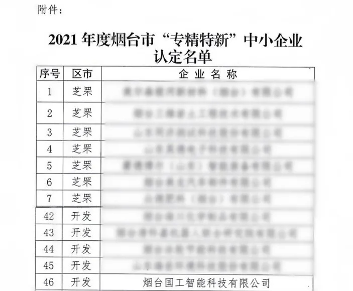 熱烈祝賀國工智能榮獲煙臺市“專精特新”中小企業(yè)榮譽(yù)稱號