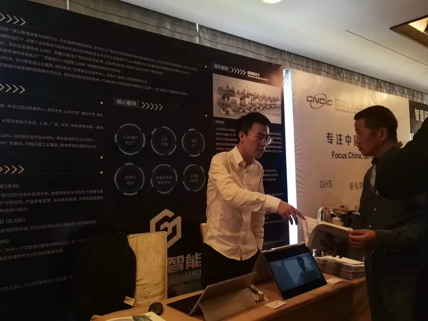 同時(shí),在會(huì)議休息期間,參會(huì)人員來到國工智能展位所在區(qū),進(jìn)行了相關(guān)溝通交流,展位上,在國工智能華東區(qū)大區(qū)負(fù)責(zé)人朱春領(lǐng)的帶領(lǐng)下,進(jìn)行了相關(guān)來訪人員的接待和溝通。