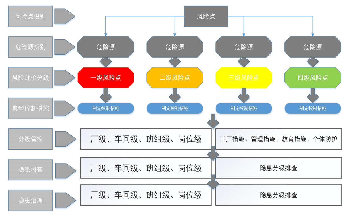 從風(fēng)險(xiǎn)分級(jí)管控方面:按照風(fēng)險(xiǎn)不同級(jí)別、管控資源、管控能力、管控措施復(fù)雜及難易程度等因素來確定不同管控層級(jí)的風(fēng)險(xiǎn)管控方式,確定了管控方式,也就有了隱患排查的方向。風(fēng)險(xiǎn)越大,管控級(jí)別越高。必須做到上級(jí)負(fù)責(zé)管控的風(fēng)險(xiǎn)點(diǎn),下級(jí)也必須負(fù)責(zé)管控,層層負(fù)責(zé)。
