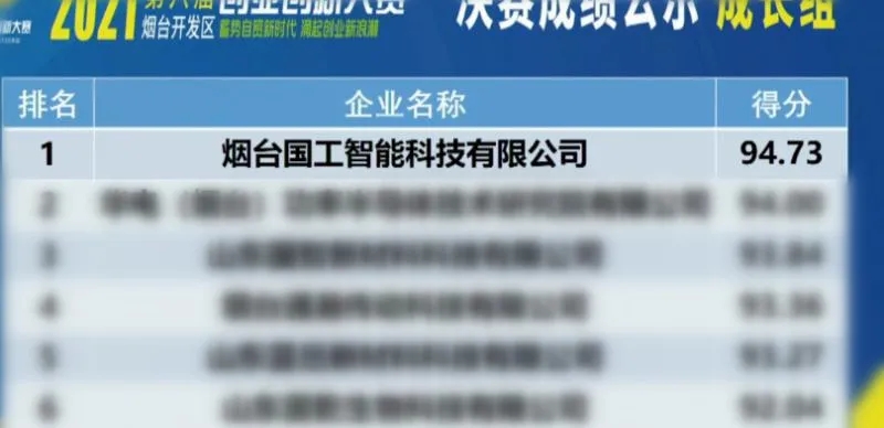 國工智能喜獲煙臺開發(fā)區(qū)第六屆(2021年)創(chuàng)業(yè)創(chuàng)新大賽一等獎