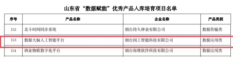 近日,山東省首批數(shù)字經(jīng)濟(jì)“晨星工廠”、“數(shù)據(jù)賦能”優(yōu)秀產(chǎn)品入庫培育名單出爐,煙臺國工智能科技有限公司的“數(shù)據(jù)大腦人工智能平臺”入選山東省“數(shù)據(jù)賦能”優(yōu)秀產(chǎn)品入庫培育項目名單。