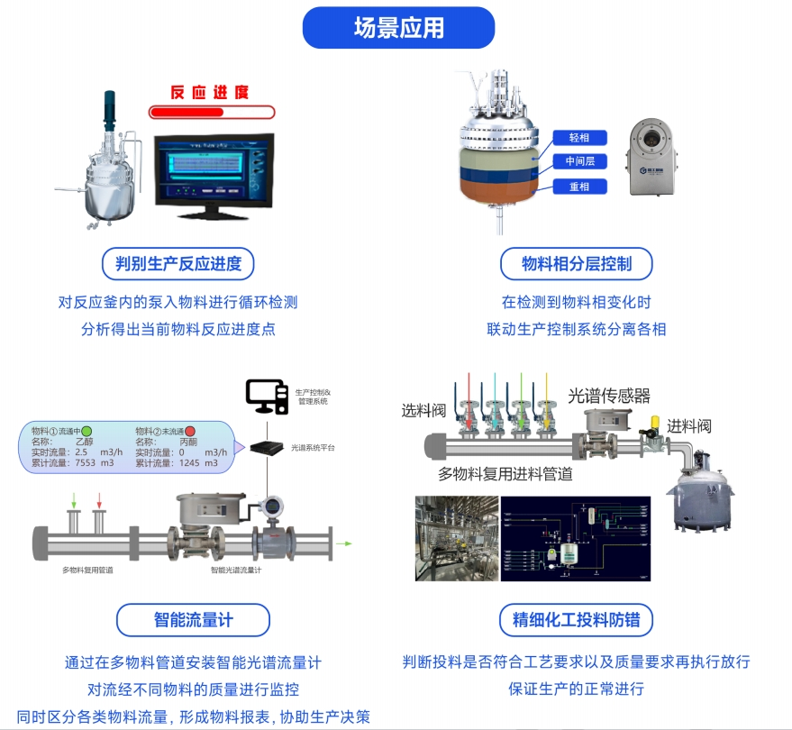通用型在線光譜儀專門為化工場(chǎng)景所研發(fā),采用本安型防爆傳感器,多光源、大光程,抗干擾能力強(qiáng),能夠快速的檢測(cè)分析得出結(jié)果,保證生產(chǎn)現(xiàn)場(chǎng)管理時(shí)效性。采用夾持的方式安裝在管道視鏡上,安裝調(diào)試方便,采樣覆蓋紫外-可視光-紅外全頻段。無需更換傳感器來調(diào)整頻段,可與產(chǎn)線生產(chǎn)控制系統(tǒng)如DCS進(jìn)行聯(lián)動(dòng)和數(shù)據(jù)傳輸,同時(shí)整套系統(tǒng)接入國工智能MAI系統(tǒng),對(duì)產(chǎn)線產(chǎn)品生產(chǎn)進(jìn)行實(shí)時(shí)監(jiān)控和決策分析.